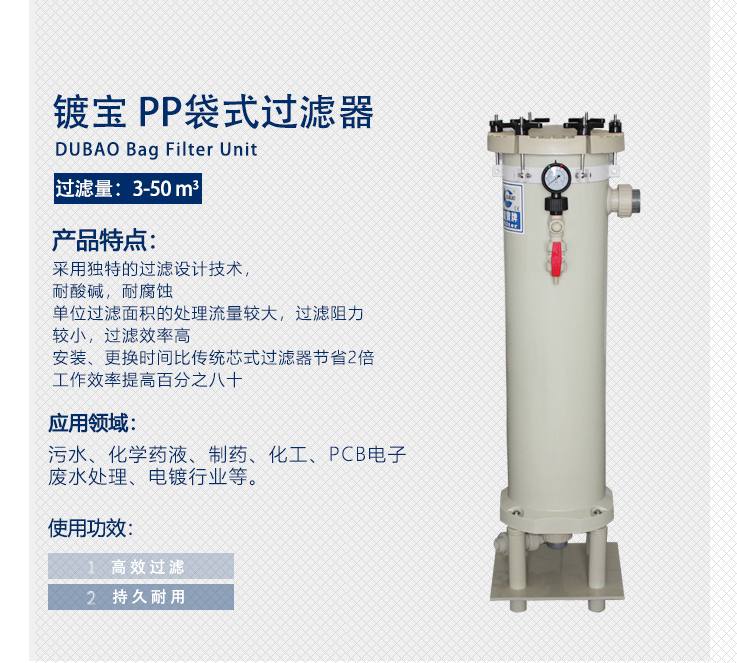 4、過濾機主體與底座采用PP材料一-體射出成型,焊接點Z少具耐高溫、耐酸堿等特點。